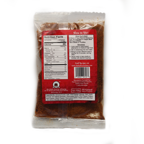 DESCRIPTION Bailey Rae's Taco 'Bout It Taco Seasoning is the perfect way to add some bold and delicious flavor to your meals. This spicy seasoning blend will have you shouting "Ole!" with every bite. While it's a great addition to tacos, this versatile seasoning can be used to add some depth of flavor to a variety of dishes. Just a small amount of this seasoning goes a long way, making it a great addition to salads, rice, and more. But be warned - it packs a serious punch of heat! Crafted with a perfect blend of spices, this taco seasoning is a must-have for any home cook looking to add some excitement to their meals. This deliciously spicy seasoning blend will have your taste buds dancing with its flavor profile. So go ahead, add some heat to your meals with just a sprinkle of Bailey Rae's Taco 'Bout It Taco Seasoning. |